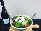 Spring mix, cherry tomatoes, roasted organic chicken, Castelvetrano green olives, shaved parmigiana, lemon, EVOO.